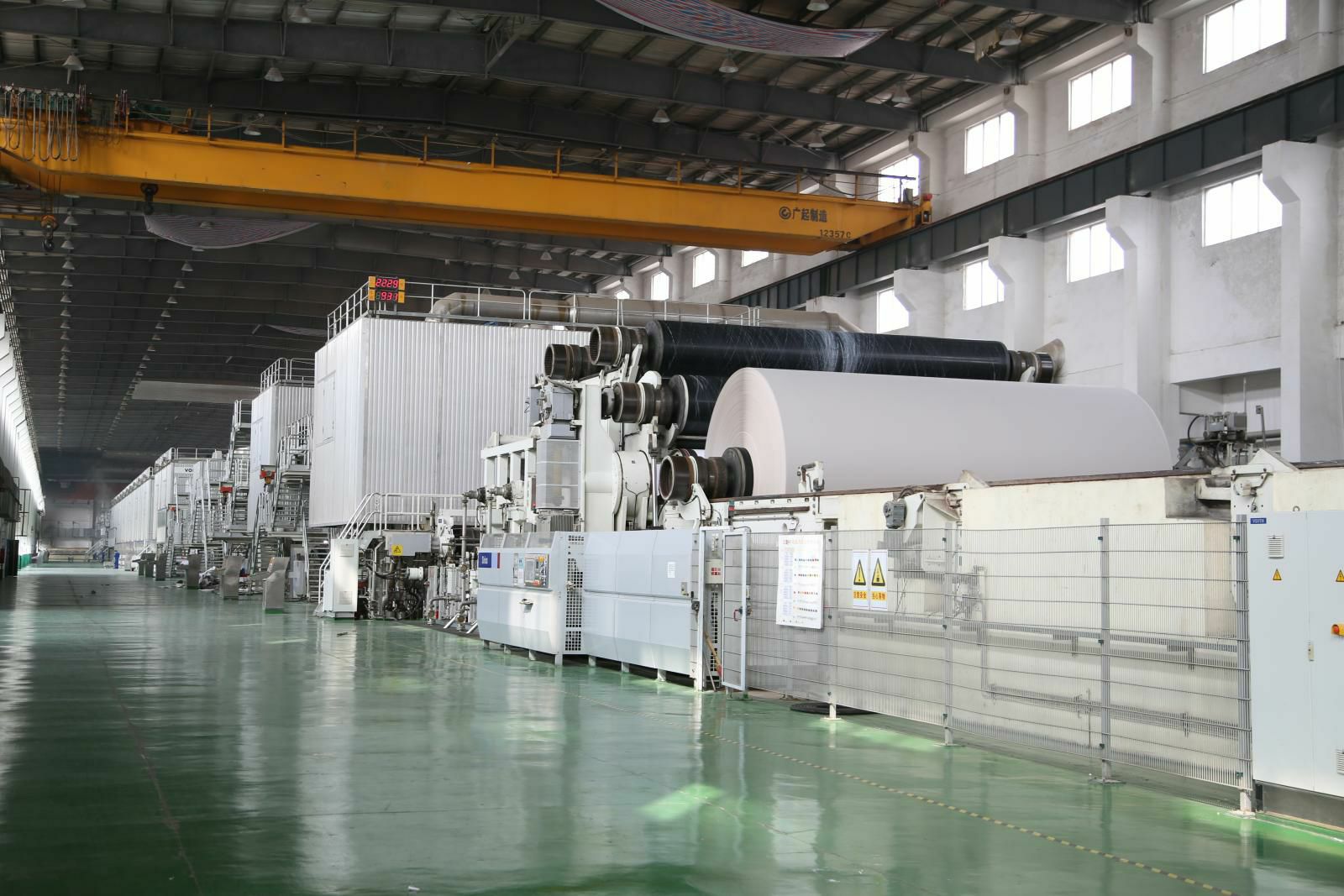 PM8造纸生产线,配套奥地利安德里茨美国凯登制浆生产线,纸机由德国福伊特公司制造,幅宽6.6米,设计车速1100米/分,主要生产200-450克的涂布白板纸,年产能60万吨。纸机主要采用帘式涂布技术进行涂布,生产出的纸张表面平整,覆盖性好,印刷效果极佳。